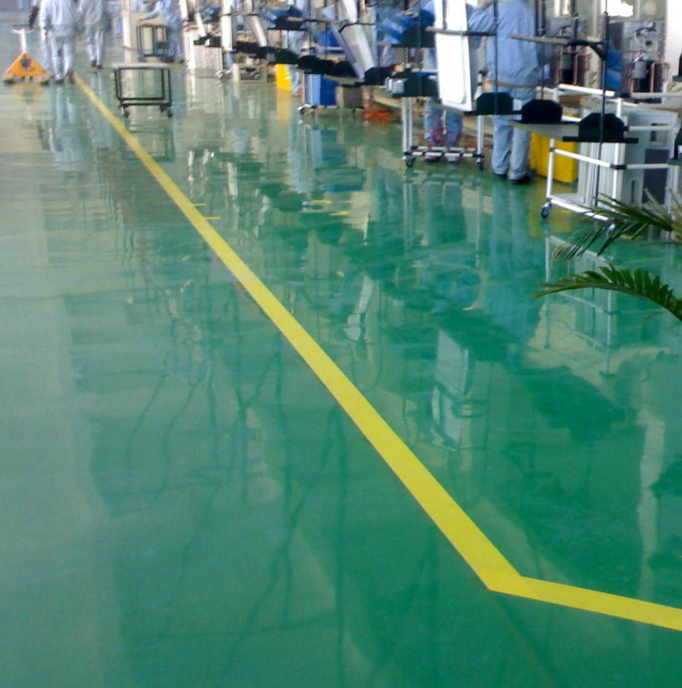 環(huán)氧地坪漆可分為溶劑型和無(wú)溶劑型兩種,溶劑型環(huán)氧地坪涂料在生產(chǎn)、施工和固化過(guò)程中會(huì)排放一定量的揮發(fā)性有機(jī)物(VOC),但成本比較低,而無(wú)溶劑環(huán)氧地坪涂料符合環(huán)保理念。 上世紀(jì)中后期開(kāi)始?xì)W美出現(xiàn)了許多潔凈車間地坪,它采用整體聚合物面層,稱為“環(huán)氧地坪漆”(epoxyflooring),主要成分為環(huán)氧樹脂和固化劑。