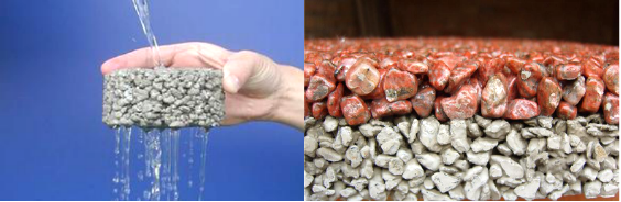 透水混凝土也稱為排水混凝土和生態(tài)透水混凝土或者透水地坪,是由小石子、水泥、摻合增粘劑、水、彩色強化劑、增強以及穩(wěn)定劑等材料經(jīng)一定比例調(diào)配拌制而成的一種多孔的新型環(huán)保地面鋪裝混合,具有透氣、透水和重量輕的特點,有效解除積水現(xiàn)象,并能高效地消除地面上的油類化合物等環(huán)境污染的危害,是維護環(huán)境生態(tài)平衡的優(yōu)良鋪裝材料。